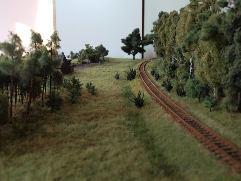 Ciężka sprawa. Zdjęć makiety w końcowej fazie nie mam w ogóle, bo ich nie robiłem. A te z budowy gdzieś wcięło, zresztą były ich ze trzy na krzyż. Jak są jakieś, to z imprez i nie moje. Na pocieszenie kawałek szlaku, zdjęcie z 2006 r. Można dodać, że elektrosadzarki były w tym kraju wtedy mniej więcej tak rozpowszechnione, jak Tesla S dzisiaj.