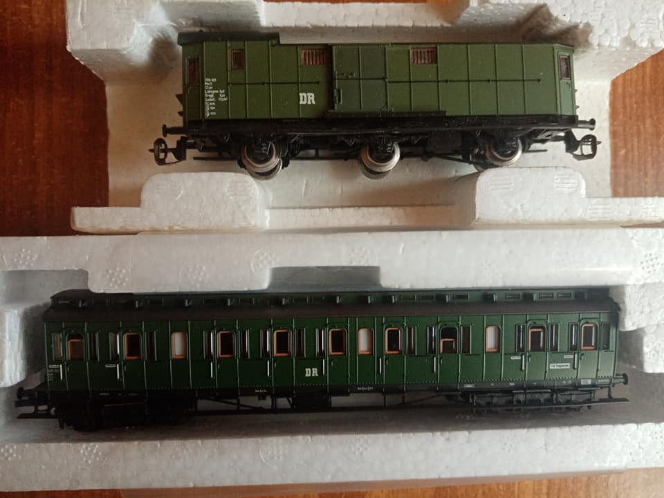 "Skład do walizki gotowy do jazd na makietę. Typowy pospieszny skład w czwartej epoce DR. Nowa loka od Wielkiego Brata przystosowana go grzania pociągu. Ludmiła praktycznie w NRD do każdego pociągu się nadawała. Parowozy serii 01/03 schodzą przy niej do drugiej ligi na niezelektryfikowanych trasach, które były w tamtym czasie w większości na sieci."
