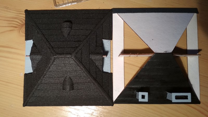 Masz rację. Lewy budynek jest o pół centymetra niższy. A to dlatego, że w oryginale dach wchodzi w boczne sztukaterie, które są jakby skute by zmieścić kant dachu.