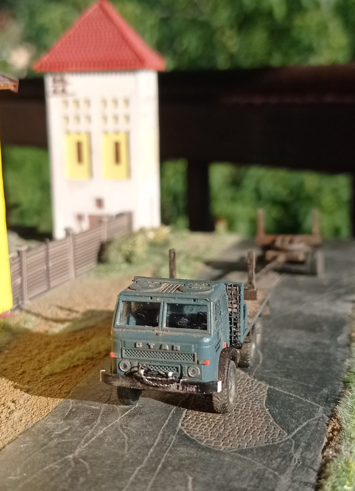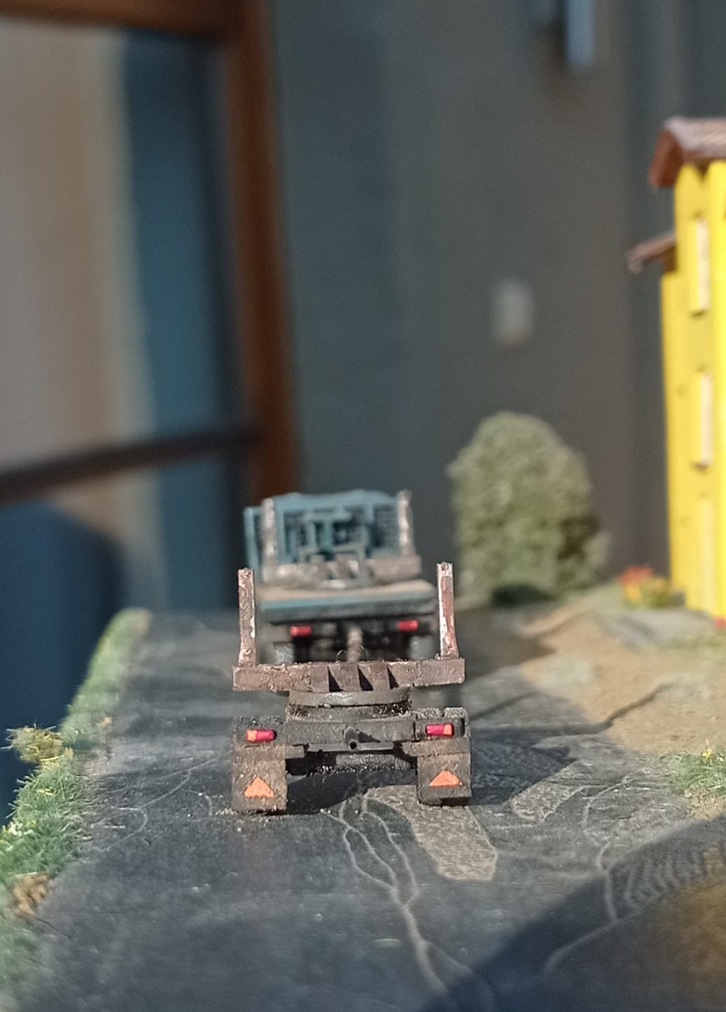 Bo to złomek. Miał stać w wysokich krzakach czekając na unicestwienie, ale jak się naoglądałem złomu z lasów wożących drewno to wyjąłem go z pudełka złom i dorobiłem pakę i koła. :lol: Tego złomka nie da się obronić, miał tak glutowo wyglądać :D