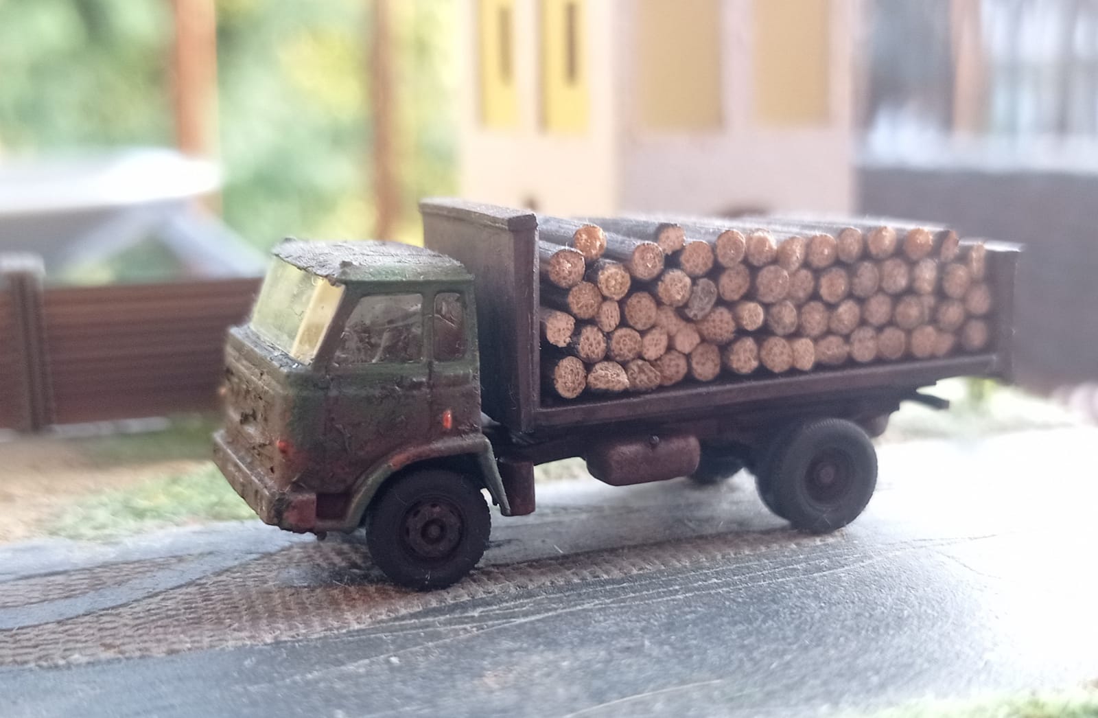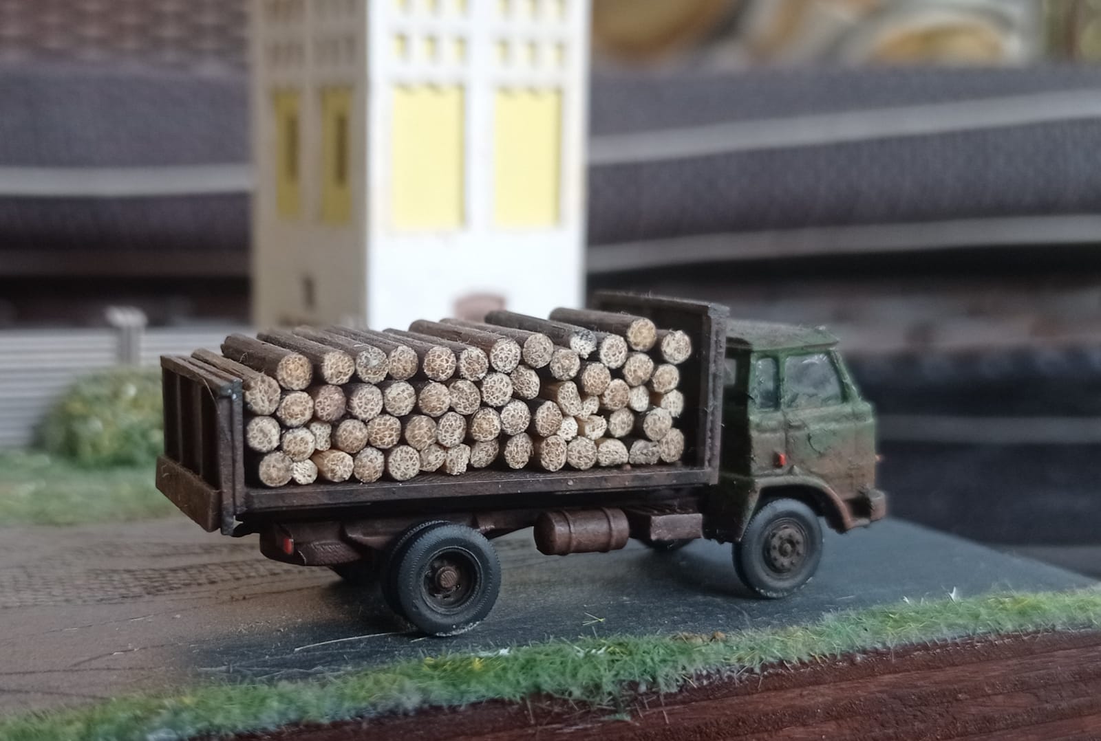 W prawdziwym lesie trudno znaleźć proste patyczki, które nadają się na taki ładunek i dobrze odwzorowują zarówno korę, jak i słoje drewna. Twój wygląda bardzo naturalnie. Na zdjęciu poniżej - moje próby z ładunkiem na platformie.