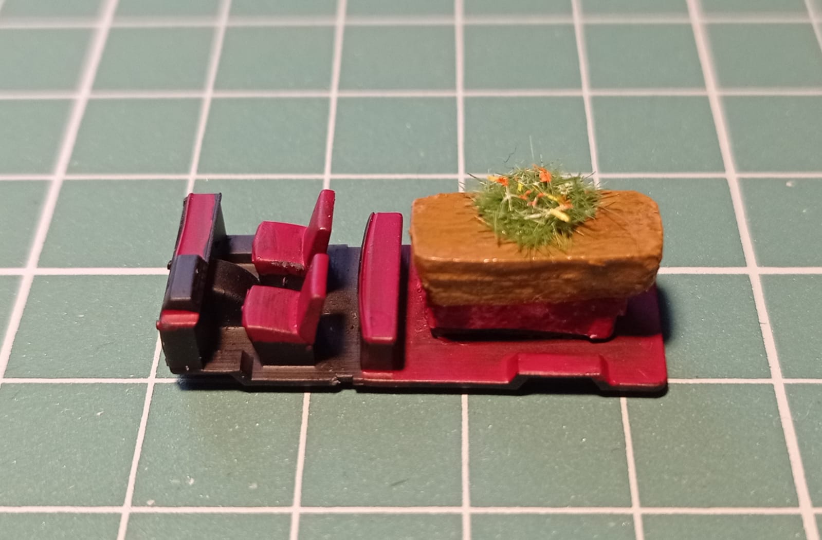 Nie, żebym miał na to sposób, ale ja spróbowałbym zrobić mniejszy wieniec tak jak robisz i otoczyć wieńcem z gąbki woodlands scenics ciemnej. Albo daj minimalną ilość jakiegoś listowia do tego, co masz. Ewentualnie możesz wyrzeźbić z BlueTack (lub czegoś trwalszego) i podmalować... A może po prostu wystarczy dać szarfę z napisem "Ostatnie pożegnanie"