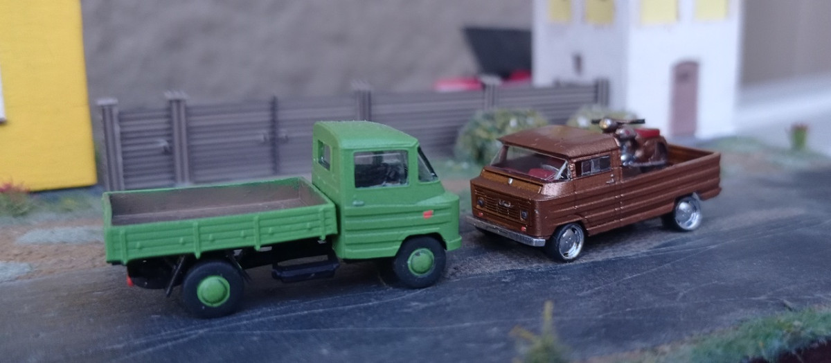 Było pytanie o podkłady. Tutaj to dobrze widać, żuk dostał czarnym a nysa białym. Czerwony ten sam na obu. Jasny chwilowo mi się już znudził