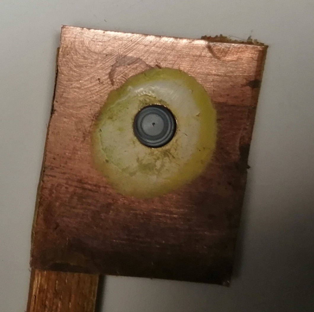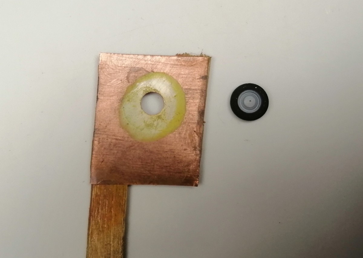 Z jednej strony blaszki przykleiłem patyczki, dzięki którym kółko zawsze jest praktycznie w środku.
