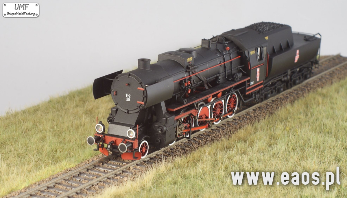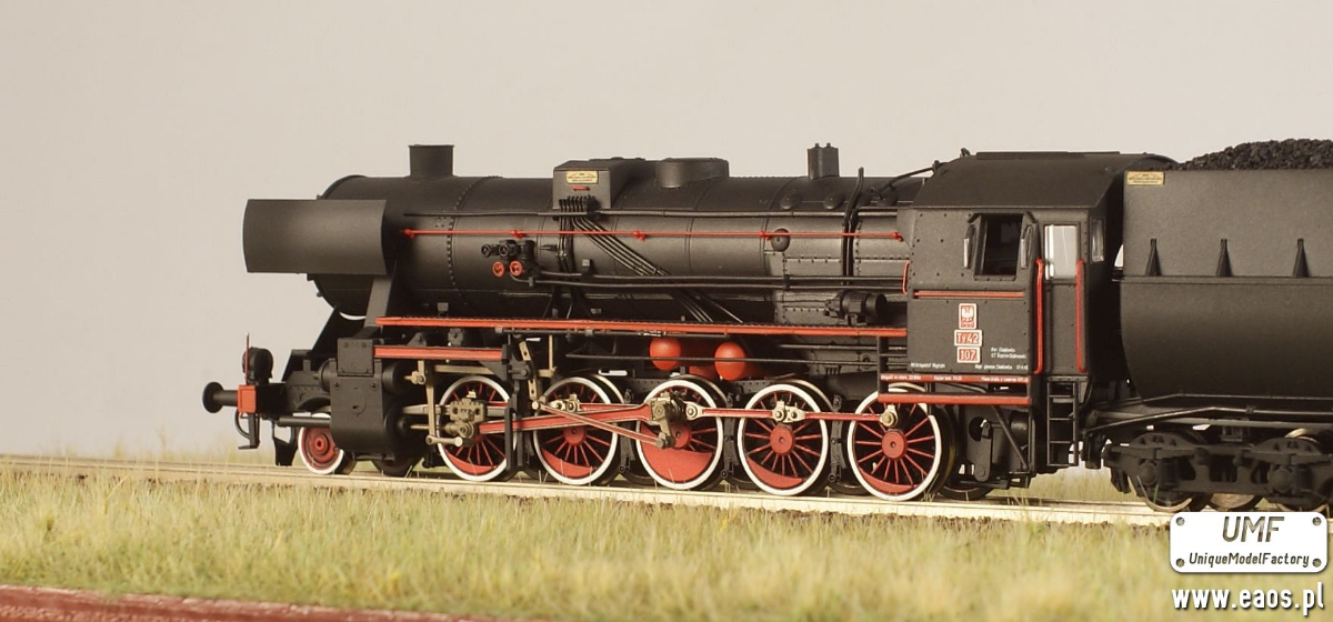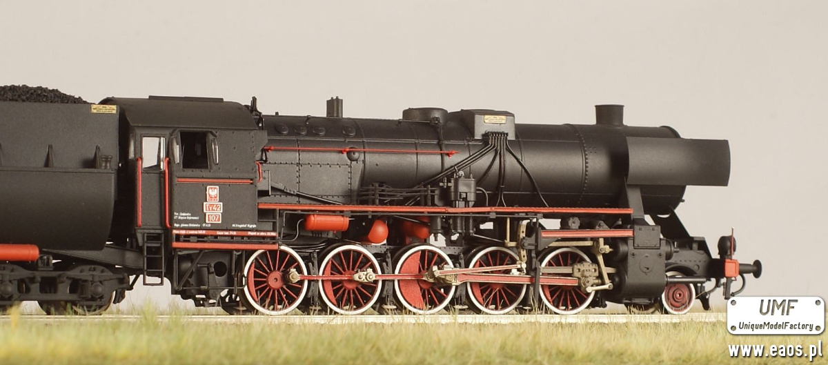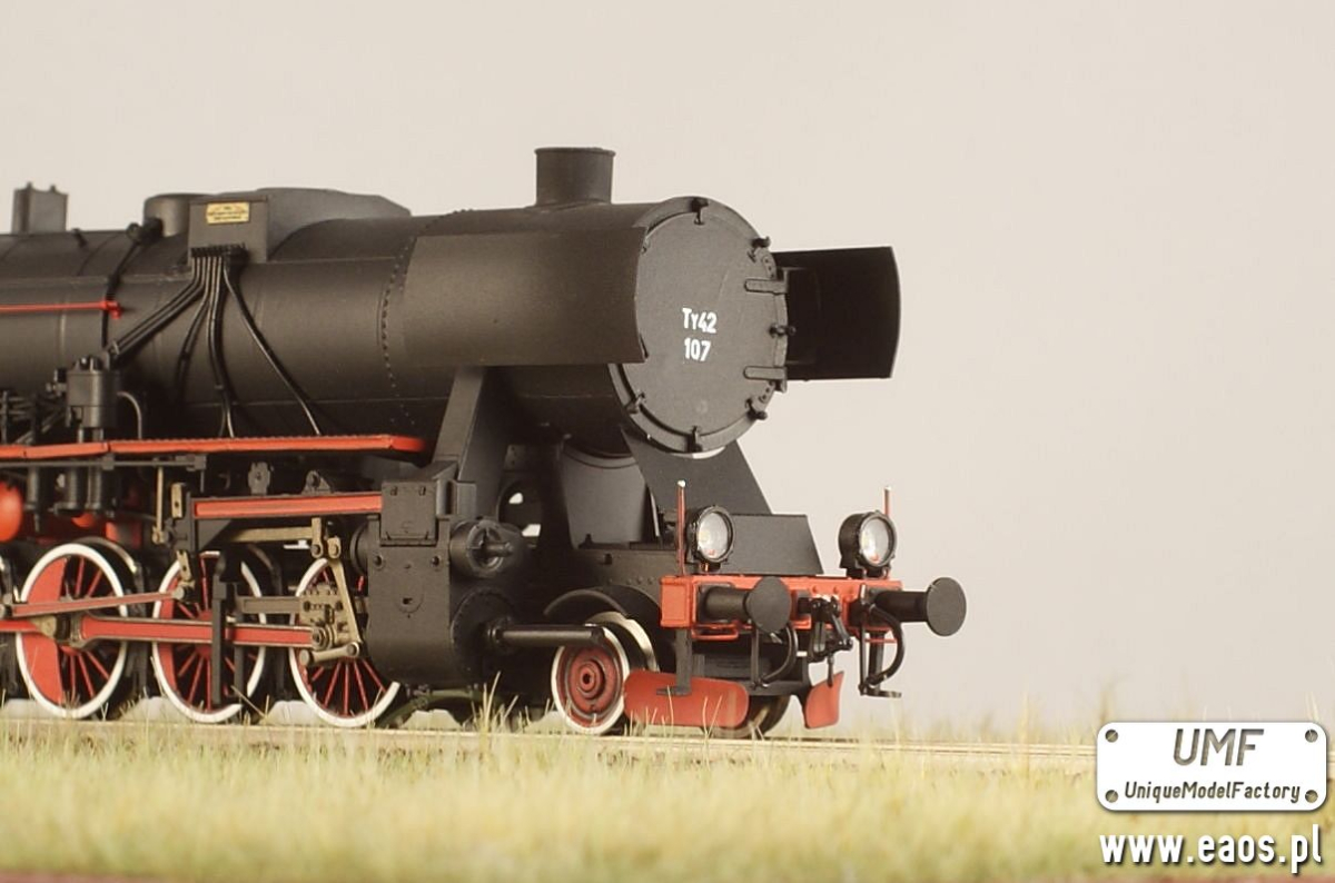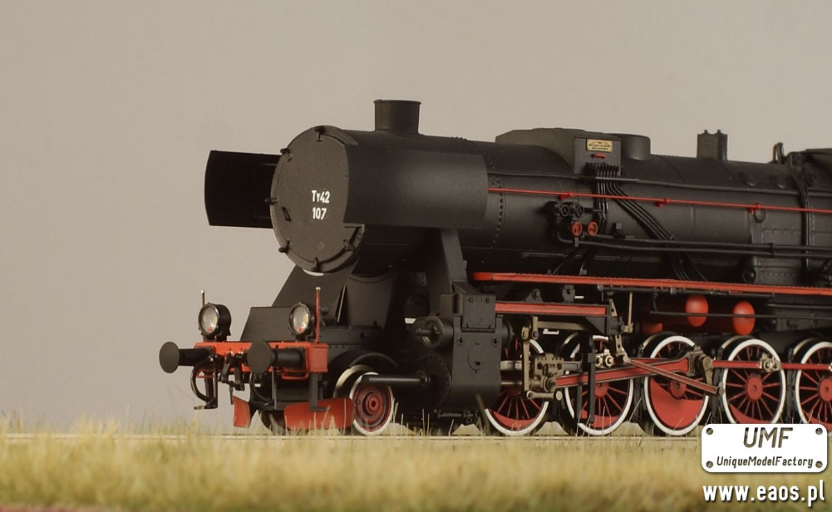 Parowóz Ty42-107 w skali H0 powstał na podstawie modelu bazowego Roco 62186 w malowaniu OBB.