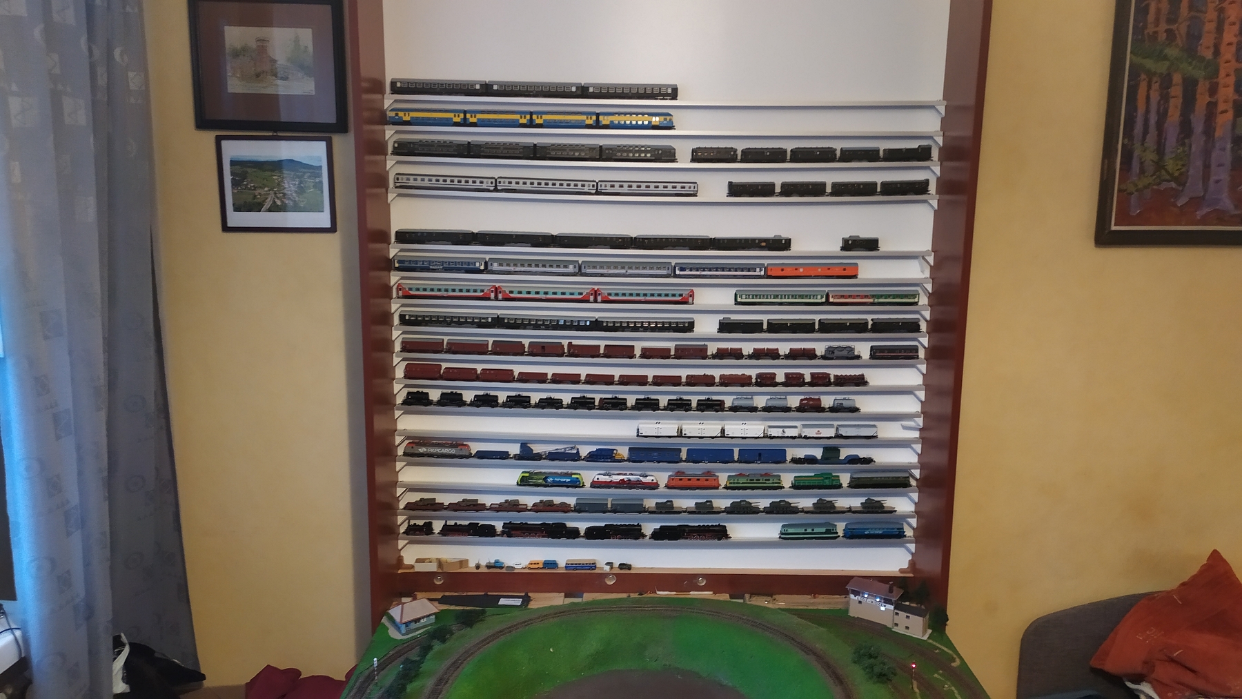 P.S. Półka wytrzymuje pod lokomotywami. Ugięcie nie zagraża taborowi. Staram się nie stawiać wszystkich ciężkich lokomotyw na jednej półce.