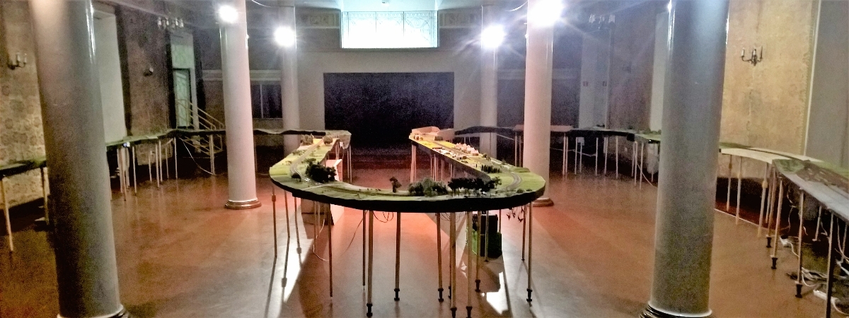 Jak by mieć do dyspozycji jakiś moduł z posterunkiem odgałęźnym, to dało by się upchnąć odnogę ze stacją, czy fabryką obok sceny. Mam nadzieję ,że to nie ostatnia impreza w tej sali