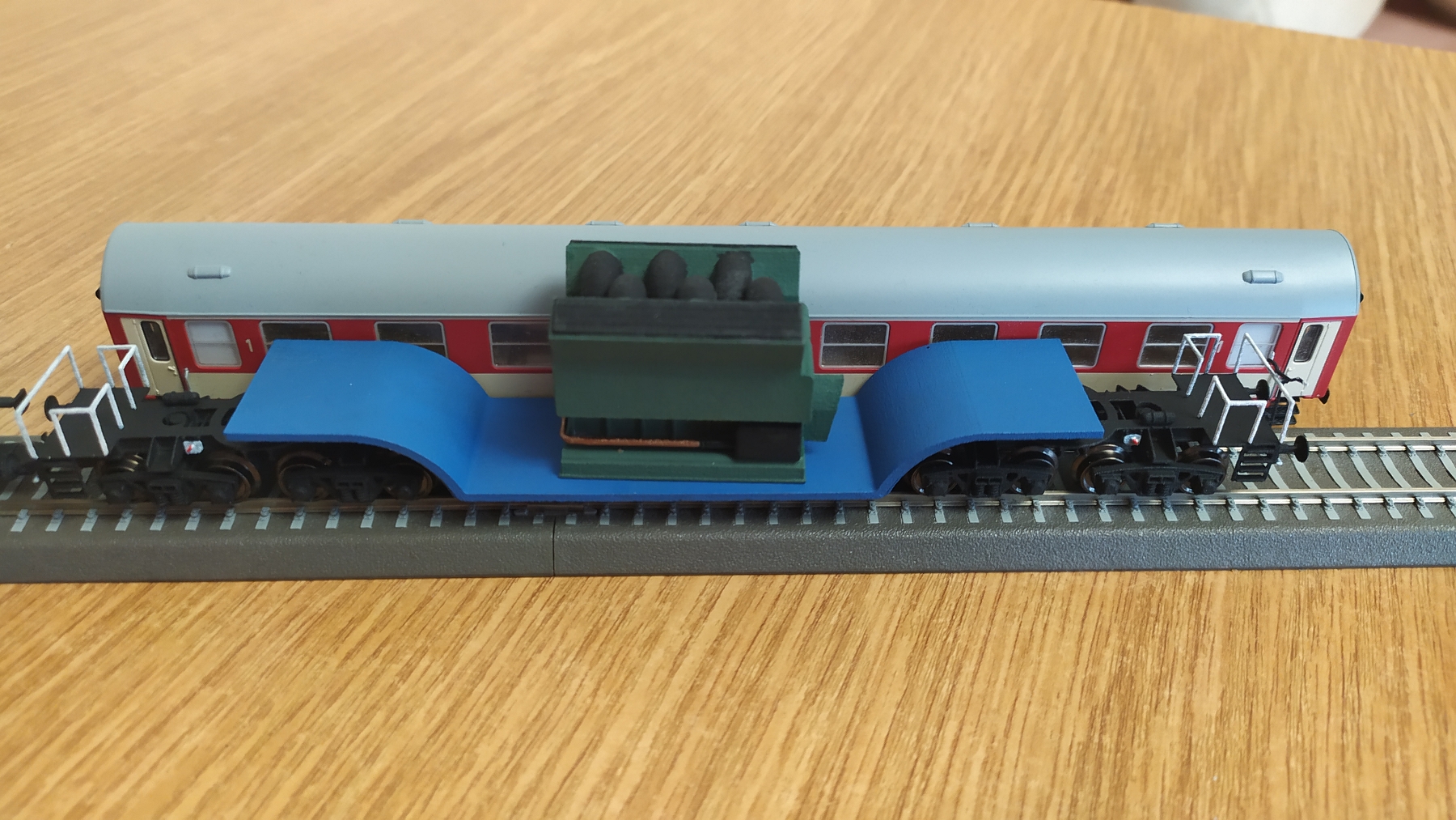 Niezła.Wózki do niej też drukowałesz czy z jakiegoś modelu pochodzą?Możesz zważyć ten wagon?