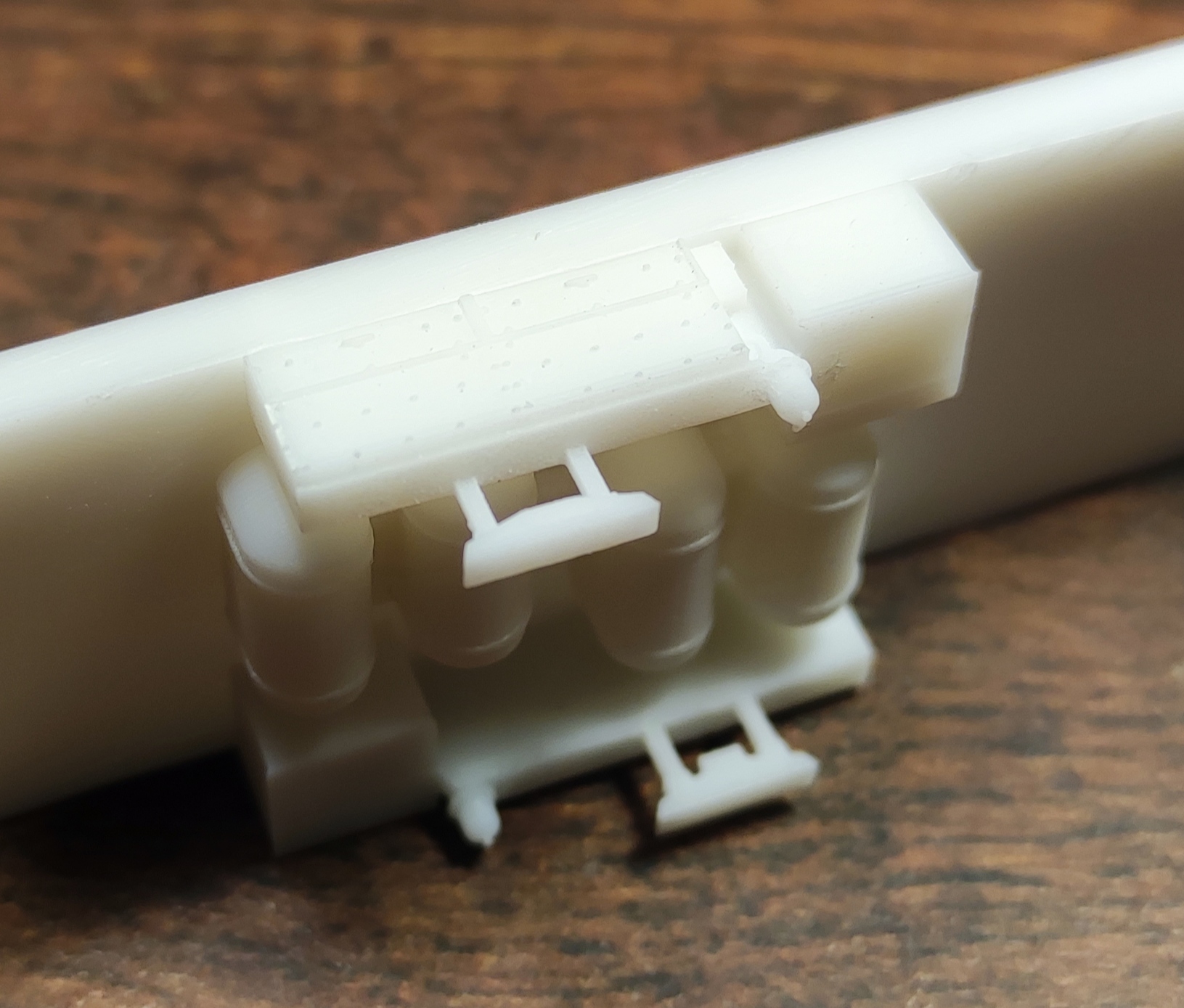 No ciekawie ciekawie. Jeśli te wydruki są trwałe, to może faktycznie nie warto odlewać. Mocowanie haka pod sprzęg troszkę wydaje się przeskalowane, ciekawe jak te elementy jasne będą wyglądać po podkładzie. Kibicuję