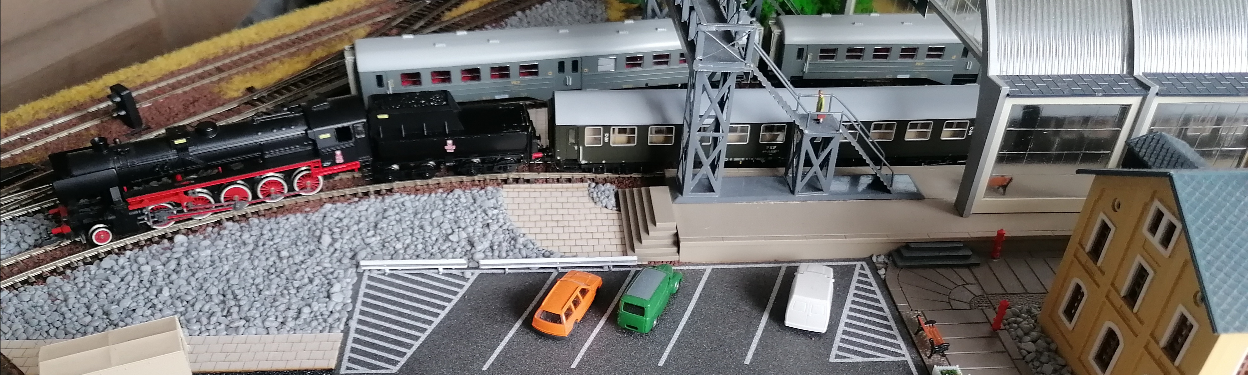 Makiecie kolejowej uroku dodają... samochody.