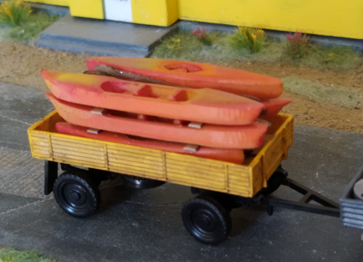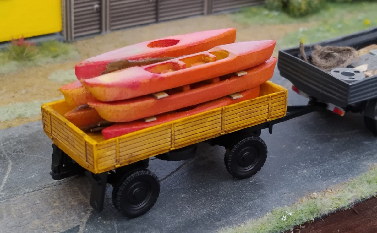 Kajaki są wożone na stelażu w kształcie odwróconej litery V, nigdy luzem.