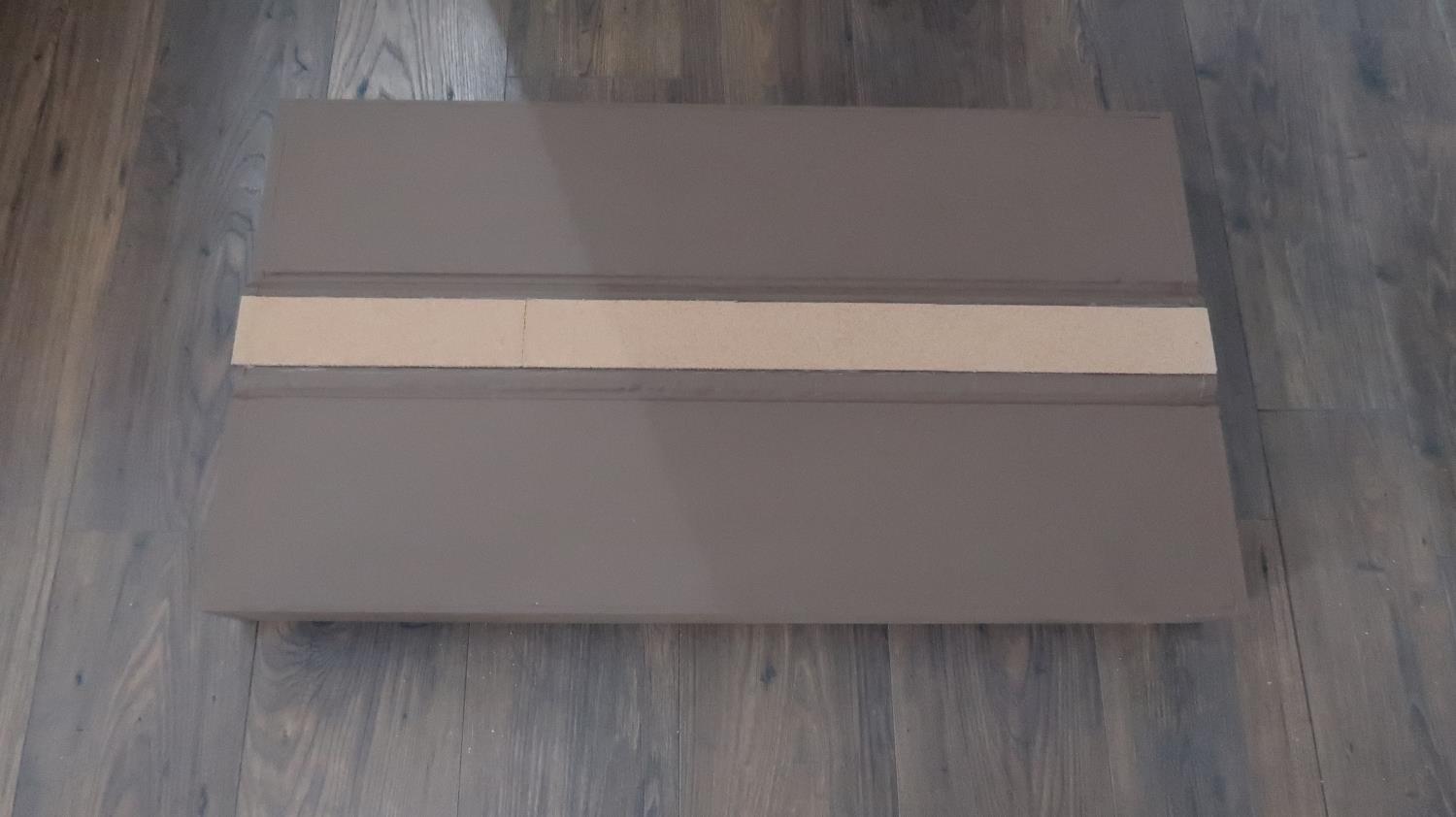 Tak przygotowany moduł pomalowałem farbą emulsyjną Nobiles jesień borowikowa. Jest to najpopularniejszy kolor, którym malujemy czoła i boki modułów na Pomorzu, dzięki czemu na wystawach modelarskich dowolnie połączone moduły tworzą jednolitą całość.