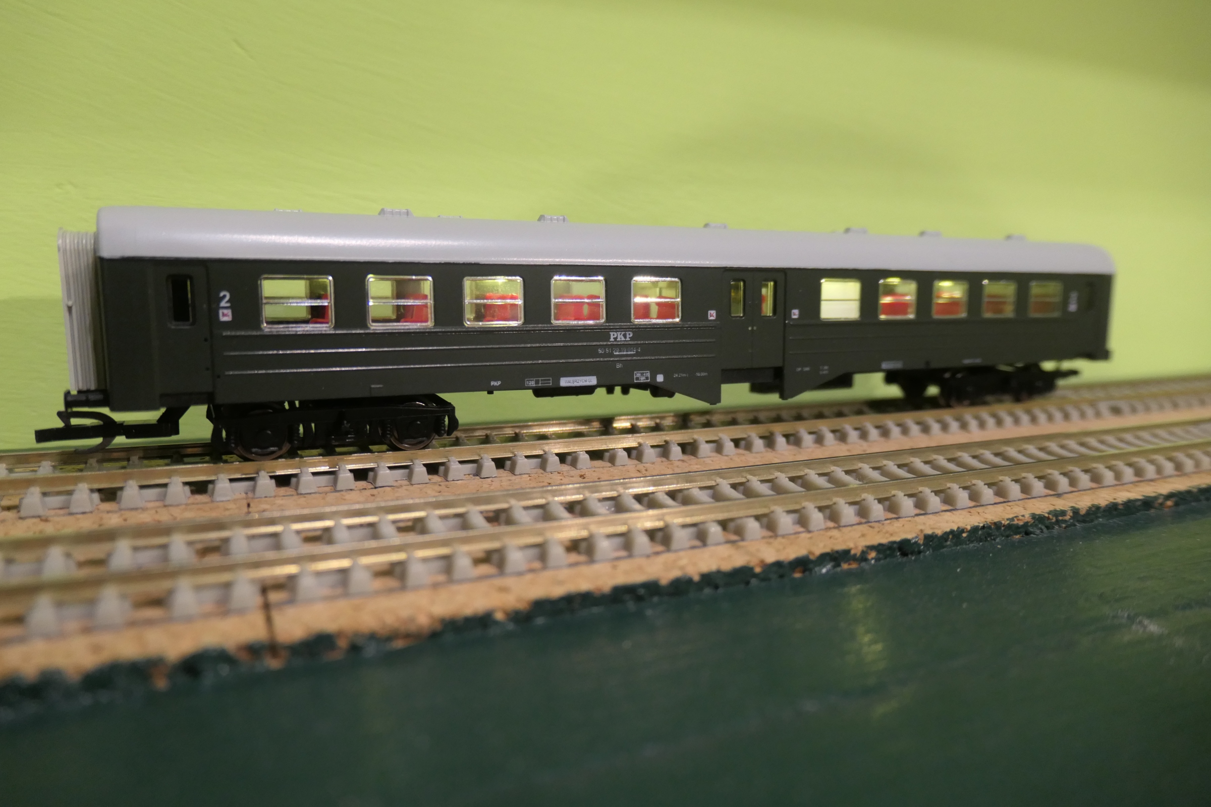 Mój właśnie dotarł - jest w nim zainstalowana płytka oświetlenia, nie wiem jak to jest rozwiązane ale po zdjęciu z torów świeci ponad 3 minuty (kondensatory?). Ciekawostka - posiada także oświetlenie końca składu pociągu - barwa oświetlenia wnętrza - biała ciepła (próby wykonane w przy zasilaniu analogowym - nie mam w domu możliwości sprawdzenia w DCC). Gorzej z tampodrukiem - jakość w stylu BTTB. Nie zauważyłem również oporów w toczeniu, tak więc prawdopodobnie zakupię drugi do planowanej SM42.