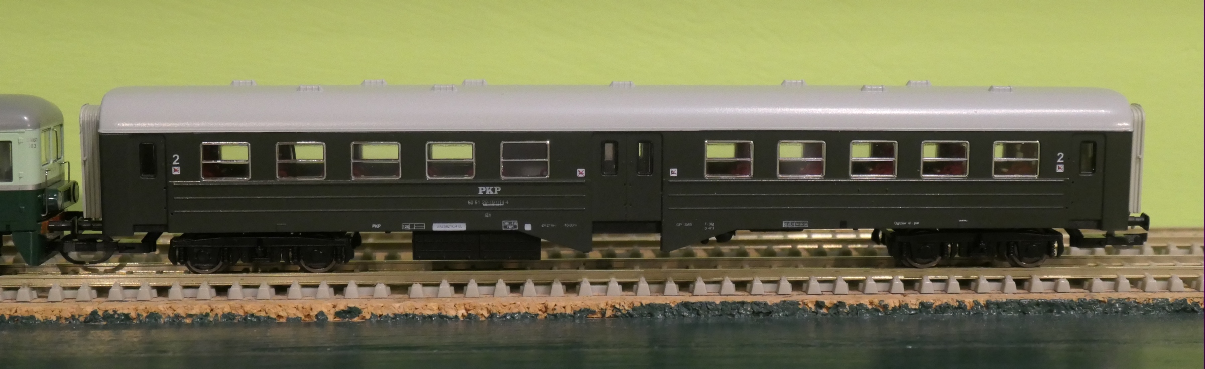 NemoTT w wątku o swojej makiecie viewtopic.php?t=17102&start=75 pokazał wcześniejszą wersję (szaro-zieloną z żółtymi oznaczeniami). Sądzę, że nowy (oliwkowy) nie różni się od tamtego standardem wykonania ani wyposażeniem (tam też NemoTT wspominał o schodzeniu lakieru z poręczy