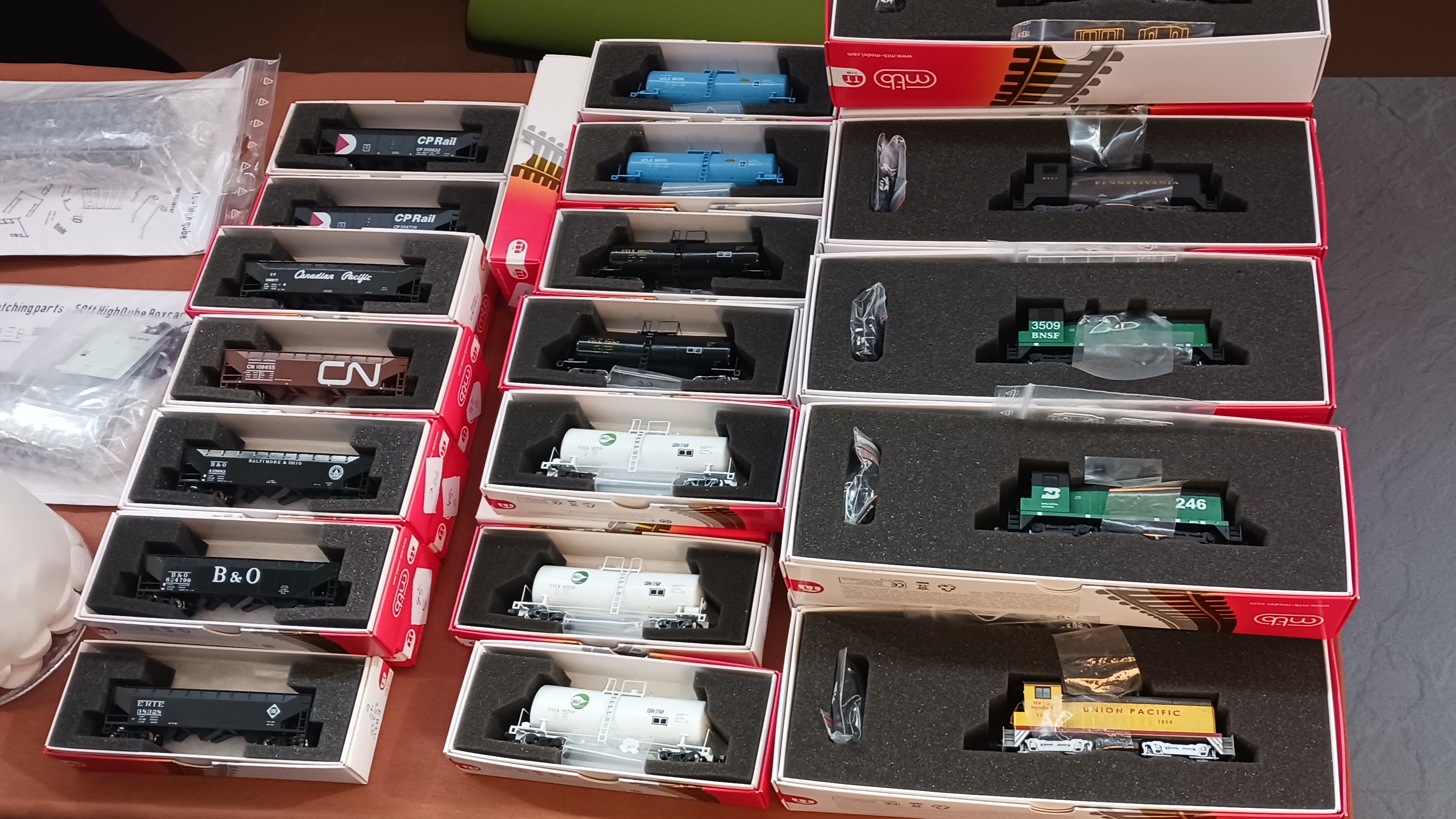 Lokomotywy,cysterny i hoppery są produkcji czeskiej firmy MTB na zlecenie Roba Dikkena z Holandii.Byłem u niego i rozmawiałem na temat modeli US.Pokazał mi kilka nowych projektów boxcarów.