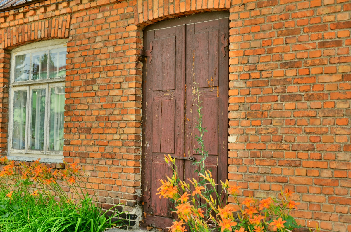 Zwróć uwagę na układ cegieł w otworach (np. prawa framuga drzwi).