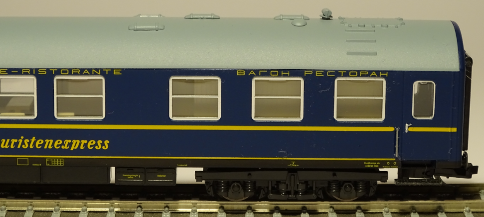 "Dla tych co lubią stare ygreki. Zdjęcia typowego niepozornego ygreka knajpy. Jednak dla zbieracza posiada pewną wartość. Z tym nr katalogowym 13714 występował tylko w jednym sezonie czyli w katalogu 2001r. Reprezentuje epokę 4a. Posiada jeszcze czarny pas na dole. Stanowi dobre uzupełnienie setu 01483 czyli Turistena czerwonego z 1972r. Historia tych wagonów była już opisywana. Porównanie z nowymi nie ma sensu. Jako uzupełnienie kolekcji dla zbieraczy cenna rzecz."