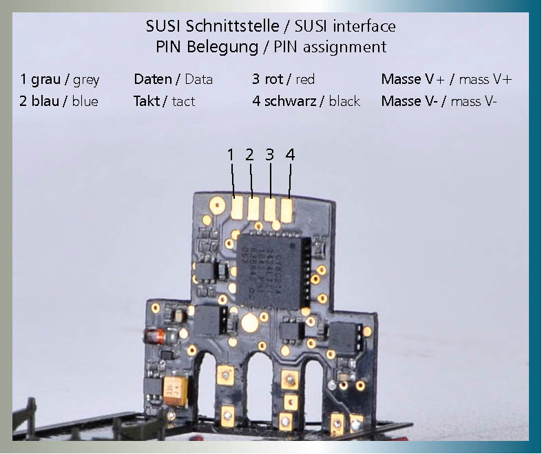 Lokomotywa ma wbudowany dekoder z możliwością podłączenia modułu SUSI (np z dźwiękiem):