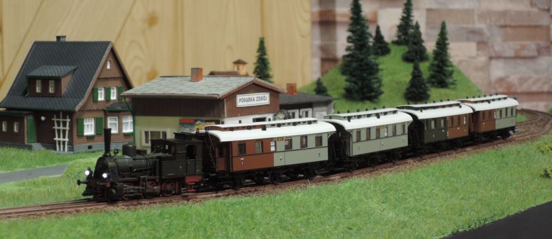 Na pociąg składa się wspomniany wyżej parowóz T3 (Tillig 04242) oraz set 4 wagonów 3-osiowych KPEV (Tillig 01726)