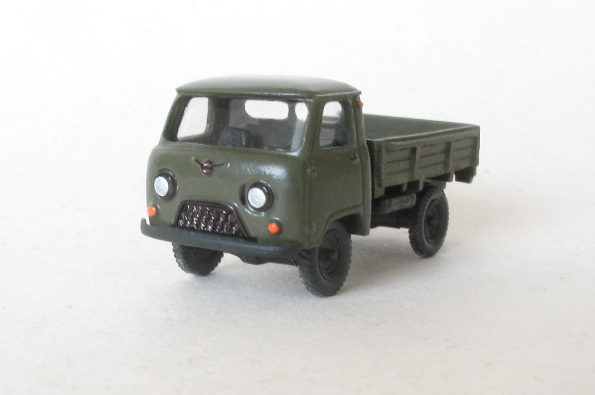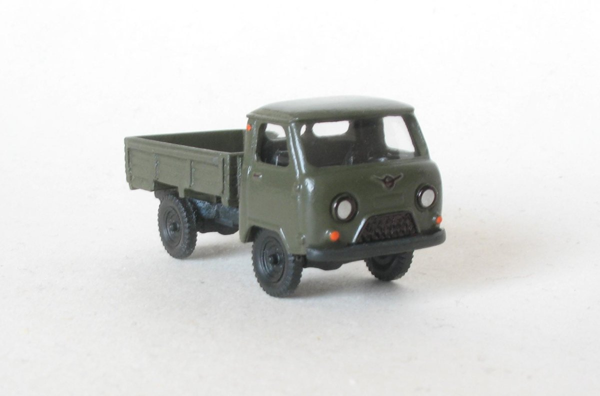 Chciałbym zaprezentować kolejny model: UAZ 452 skrzynia. Producentem jest firma ALi ( A.Radczenko ) z Ukrainy. Model to odlew żywiczny, produkcja krótkoseryjna 30-40 szt. Szyba w kabinie - wytłaczany polietylen. Pojazdy te można było spotkać przez wiele lat na naszych drogach. Nie wiem tylko czy UAZy 452 w wersji skrzyniowej były na wyposażeniu LWP, za podpowiedź będę wdzięczny. Przepraszam za słabą jakość zdjęć.