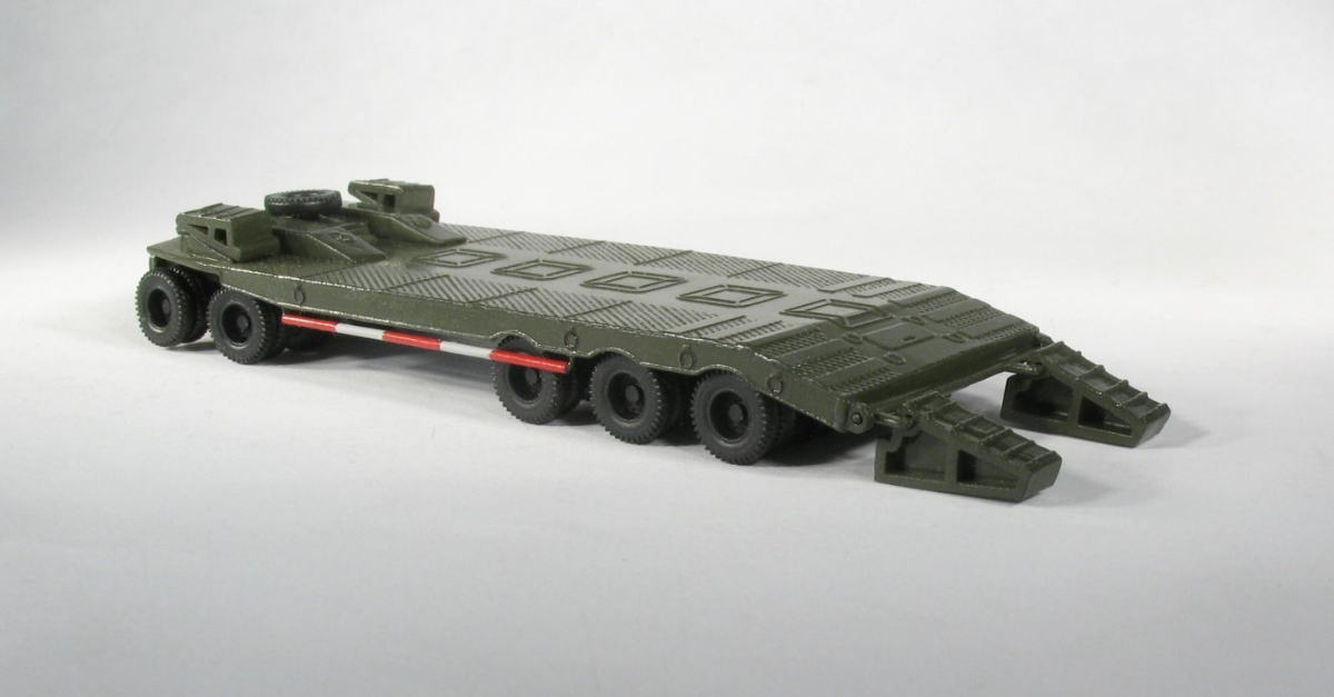 Model pięcioosiowej przyczepy niskopodłogowej. Model jest wyposażony w skrętny przedni wózek z trójramiennymi „kierownicami” oraz podnoszony dyszel. Na przyczepie pomiędzy klinami oporowymi spoczywa koło zapasowe. Tylne kliny najazdowe są ruchome i umożliwiają ich rozłożenie tak jak w oryginalnej przyczepie. W klinach najazdowych umieszczone są tylne światła. Wzdłuż jednej z burt znajduje się, tak jak w oryginale „sztywny hol” pomalowany w biało czerwone lampasy. Z informacji, które posiadam to przyczepy P50 występowały w 4 malowaniach: żółtym czerwonym, szarym i zielonym militarnym.