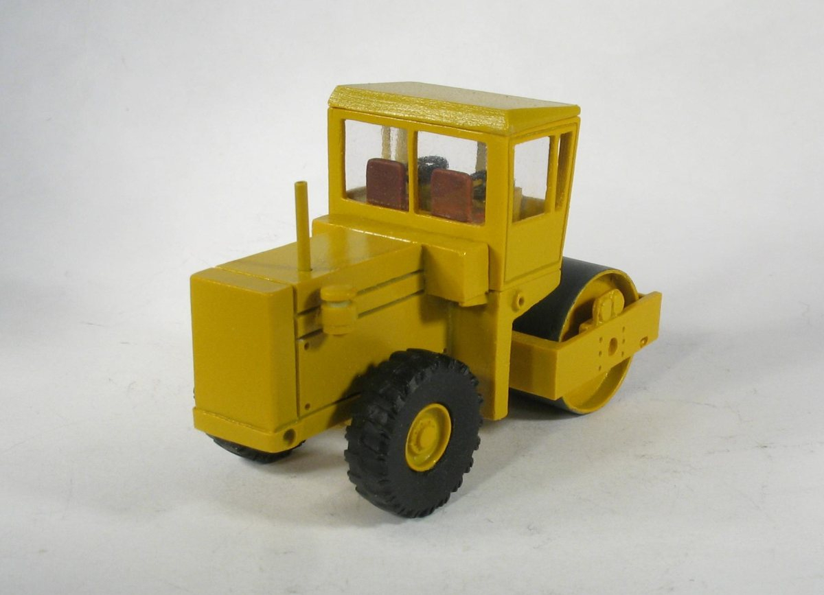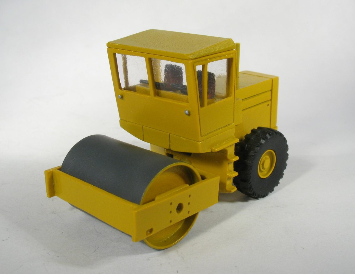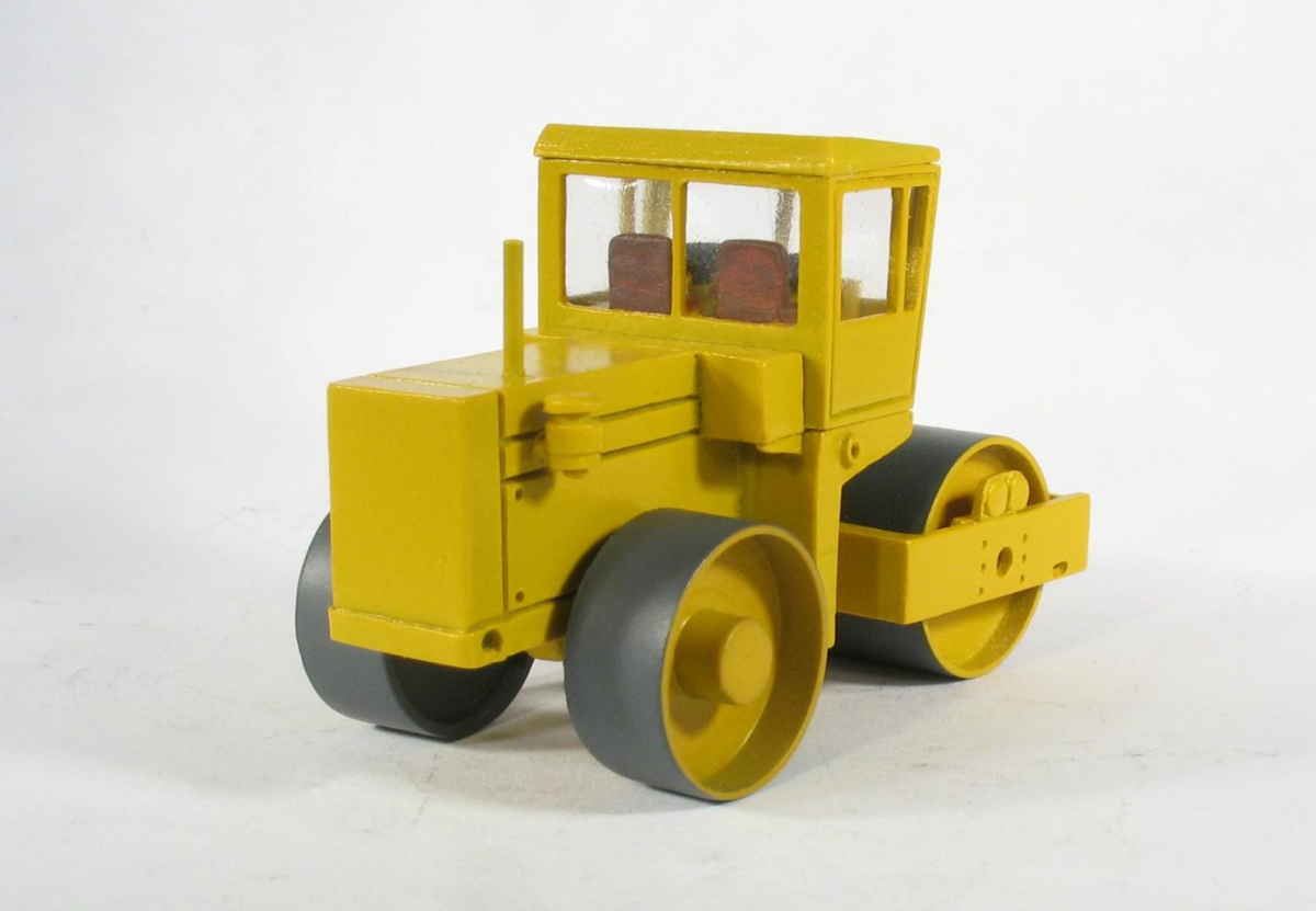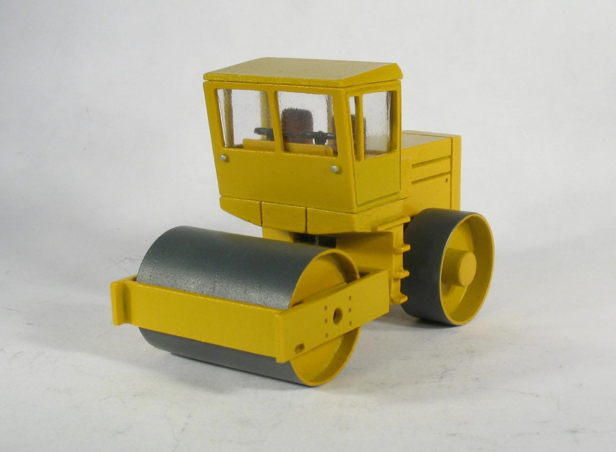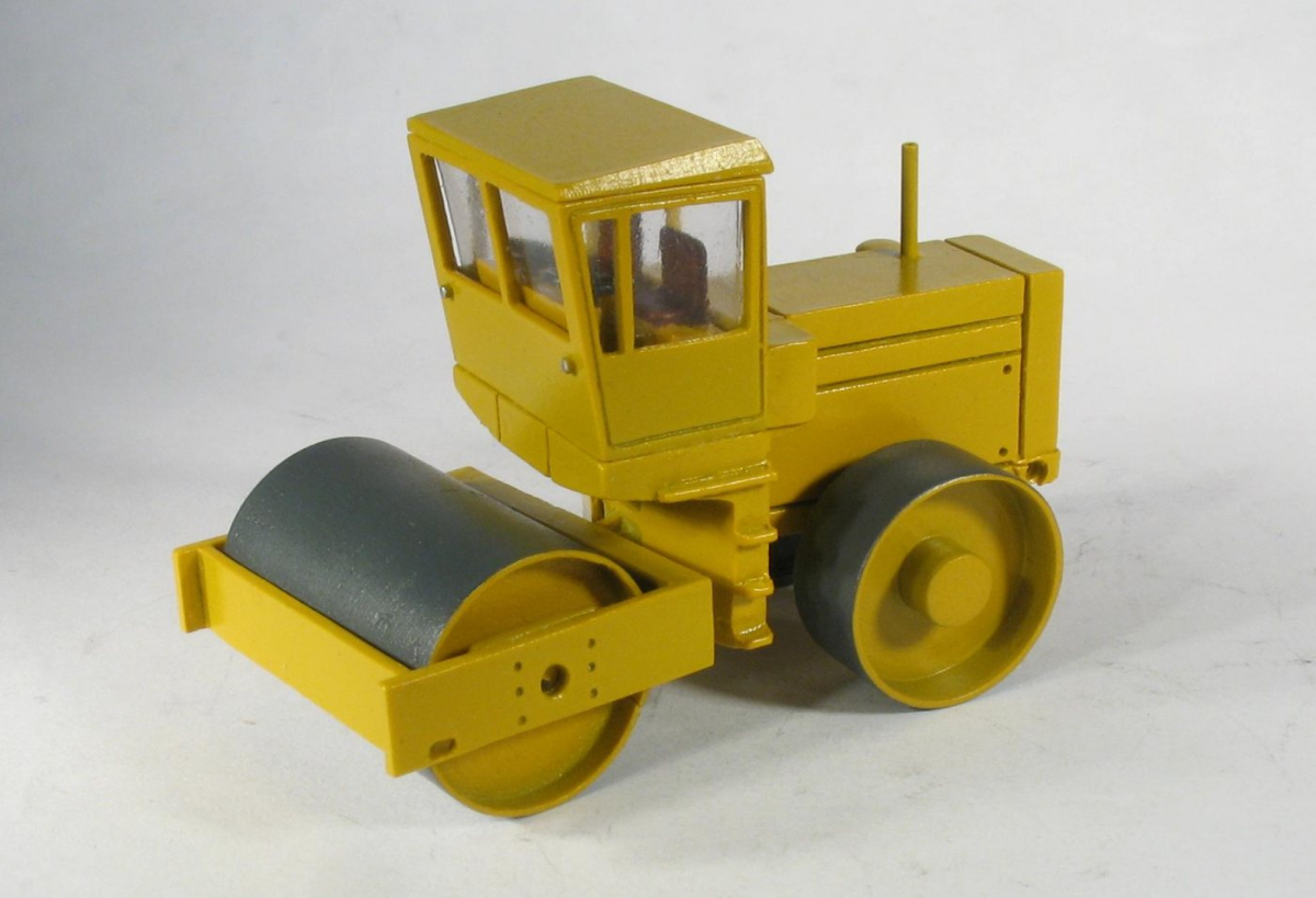 Model występuje w trzech wariantach: 1) Przedni walczak metalowy i gumowe tylne koła. 2) Przedni walczak metalowy i tylne koła metalowe 3) Przedni walczak metalowy typu jeż i tylne koła gumowe. Prezentuję tylko dwa pierwsze modele, model trzeci ( walczak-jeż) dopiero powstaje. Dla zainteresowanych załączam realfoto walca typu jeż. Modele tak jak oryginał wyposażono w dwie kierownice. Wewnątrz kabiny znajduje się siedzisko kierowcy i kokpit. Model jest łamany ( skrętny ). Zarówno przedni walczak jak i tylne koła są obracane. Z informacji, które posiadam walec występował w czterech malowaniach: żółty czerwony, pomarańczowy i niebieski.