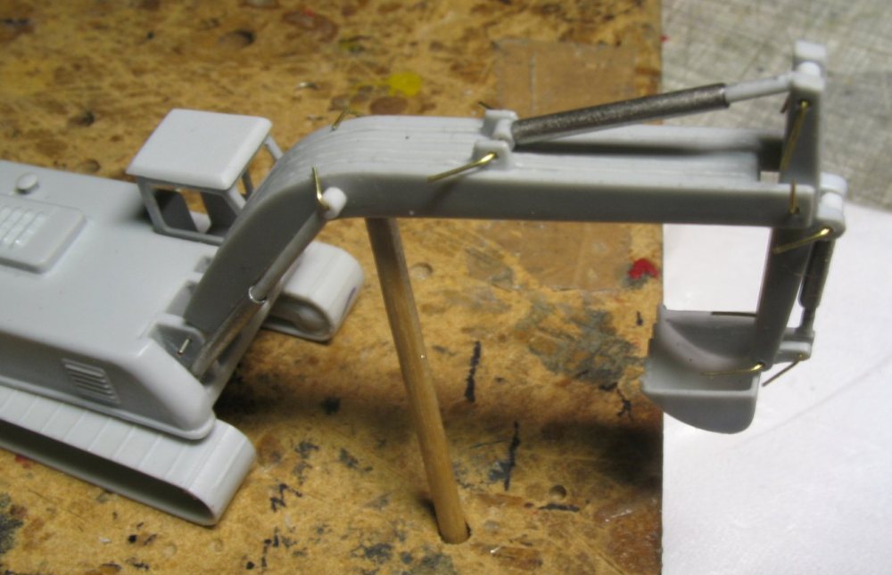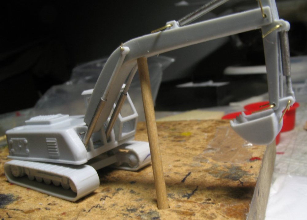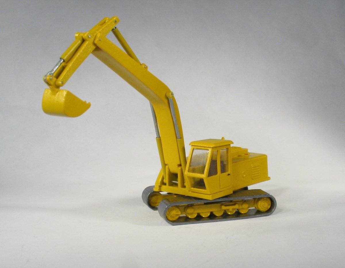 W prezentowanym modelu koparki wszystkie cztery siłowniki są ruchome, także łyżka koparki zamocowana jest wahliwie. Korpus modelu można obracać dookoła własnej osi. Wewnątrz kabiny znajduje się siedzisko operatora. Załączam też kilka przykładowych fotek jako „relację” z budowy modelu. Z informacji które przekazał mi kolega modelarz z Ukrainy to koparki te występowały w 4 malowaniach: żółtym, szarym, pomarańczowym i niebieskim. Nie znam dokładnego oznaczenia typu koparki ale postaram się odszukać i podać te dane na forum. Pamiętam, że podobną koparkę miała kilka lat temu w swojej ofercie firma Peresvet, zainteresowanych odsyłam do katalogu. Ukraiński producent oferuje także w/w model z innym osprzętem (np. wiertnicą ) niestety na dzień dzisiejszy nie udało mi się zdobyć pozostałych wariantów. Jak tylko uda mi się sprowadzić z Ukrainy inne modyfikacje tej koparki to oczywiście zaprezentuję je na forum.