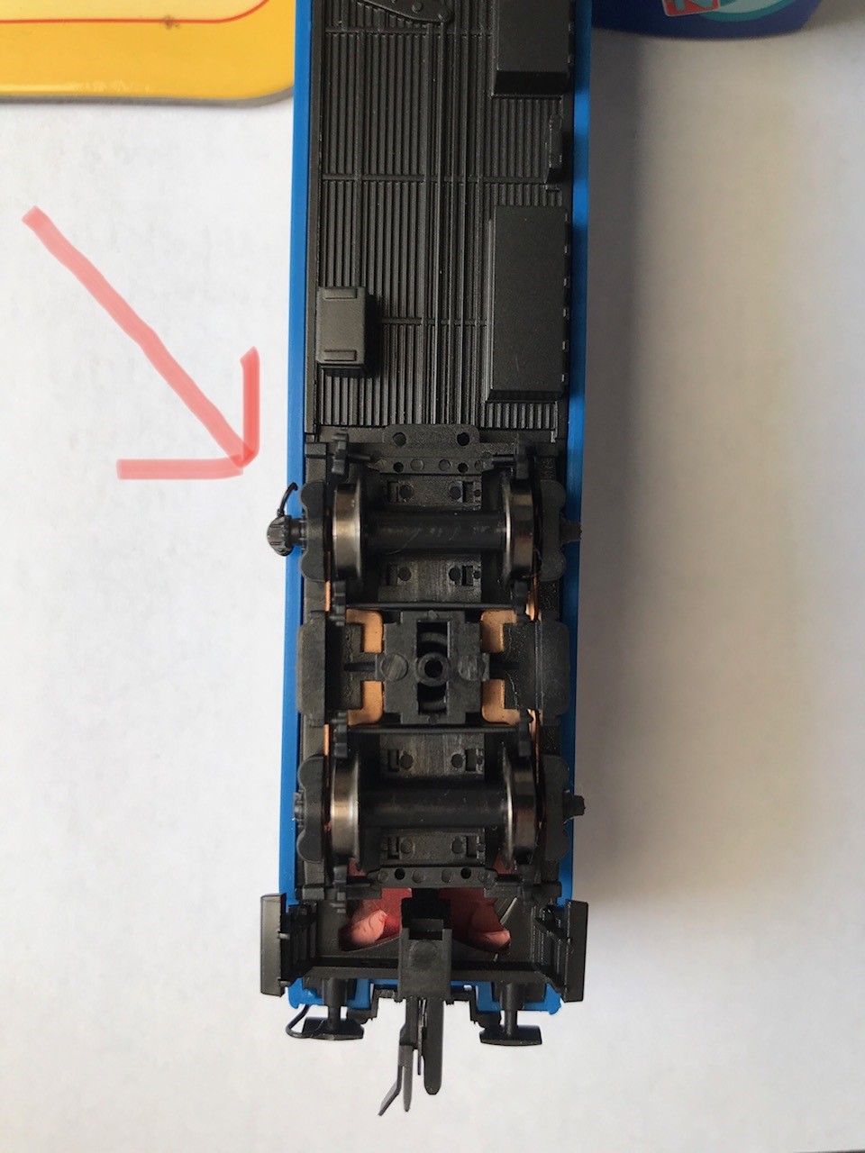 Wagony osobowe Kuehna mają jeszcze jedną ważną zaletę: odbiór prądu ze wszystkich kół, każdy wózek łapie oba bieguny (a nawet każda ośka to robi).
