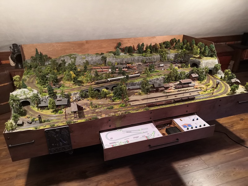 Jedyne co mógłbym zasugerować (jeśli chodzi o modyfikacje), to wydłużyć peron na stacji z przodu. Makieta jest duża, dobrze by było żeby mieściła dłuższe składy. No i w tunelu warto zrobić dworzec kryty, by można było odstawić po jednym składzie dla każdej pętli (choć nie wiem, czy jest tam miejsce).