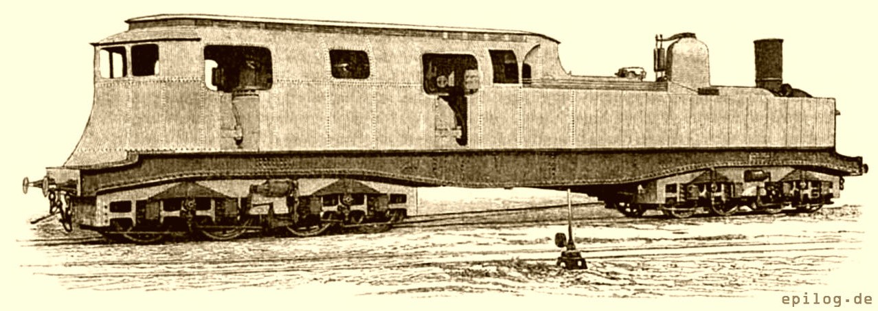 "... zwykły kocioł lokomotywy, który dostarcza parę do dwóch trzycylindrowych, stacjonarnych maszyn złożonych, z których każda napędza prądnicę osadzoną na końcach wału silnika parowego. Dwa dynama dostarczają energię elektryczną do obsługi 8 silników elektrycznych, z których każdy jest podłączony do jednej z 8 osi napędowych. Kocioł i maszyny są zamontowane na platformie wspartej na dwóch ..."