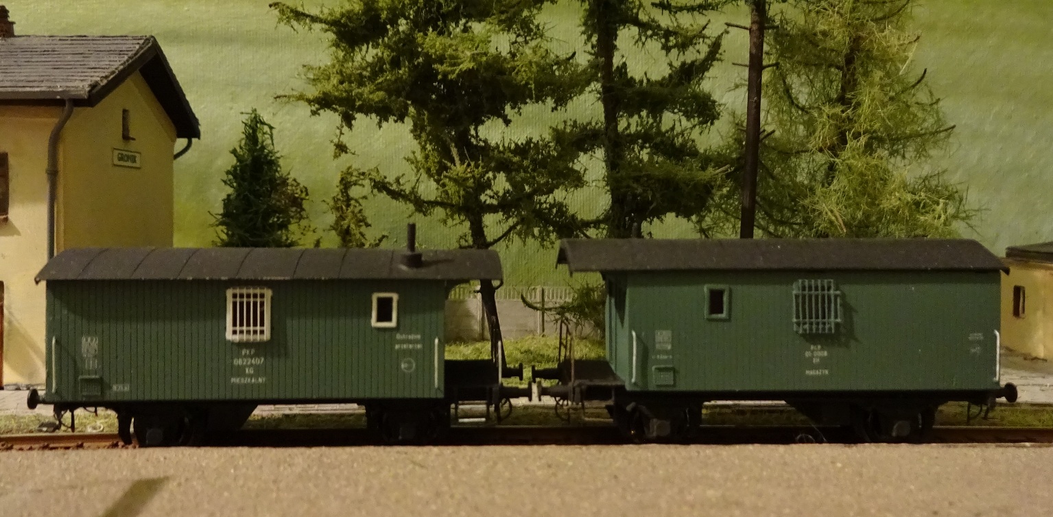 Wagony na haku, więc można uznać projekt za zakończony. Jest szansa, że wkrótce set powiększy się. Co do sprzęgów będę musiał wymienić je na KKS adaptowane do taboru BTTB , gdyż te kubełkowe haczą na rozjazdach i mogą uszkodzić przewody hamulcowe. Gdyby ktoś miał na zbyciu takowe, chętnie przygnę z 5 kompletów.