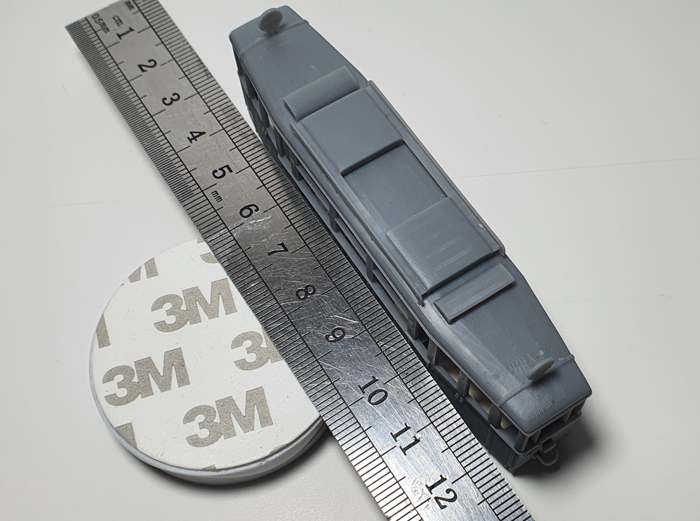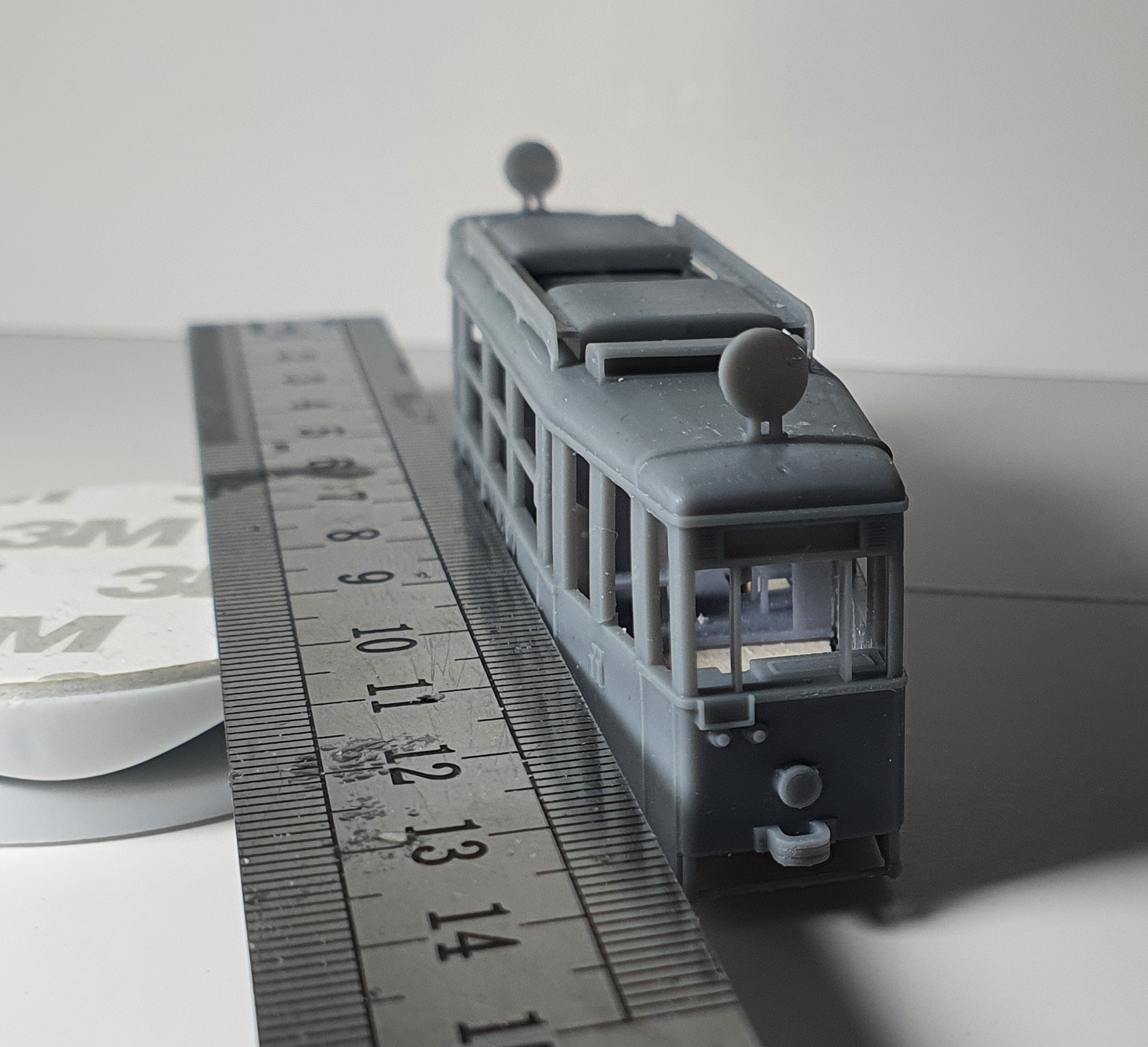 Zacznijmy od tego jaki stosujemy odbierak prądu? (potocznie nazywany pantografem) - moim zdaniem nożycowy był by zasadny, "Y" ki stosowano pod koniec eksploatacji. Po za tym ze zdjęć wynika że pudło jest krzywe, nie trzyma symetrii - ale to zdjęcia pewnie przekłamują i druk jest plastyczny, i pewnie prototyp. I dziwna ramka pod oknem...Fajna zabawa - koszt druku tego jest bardzo niski także za 50 zł max 100 można to brać.